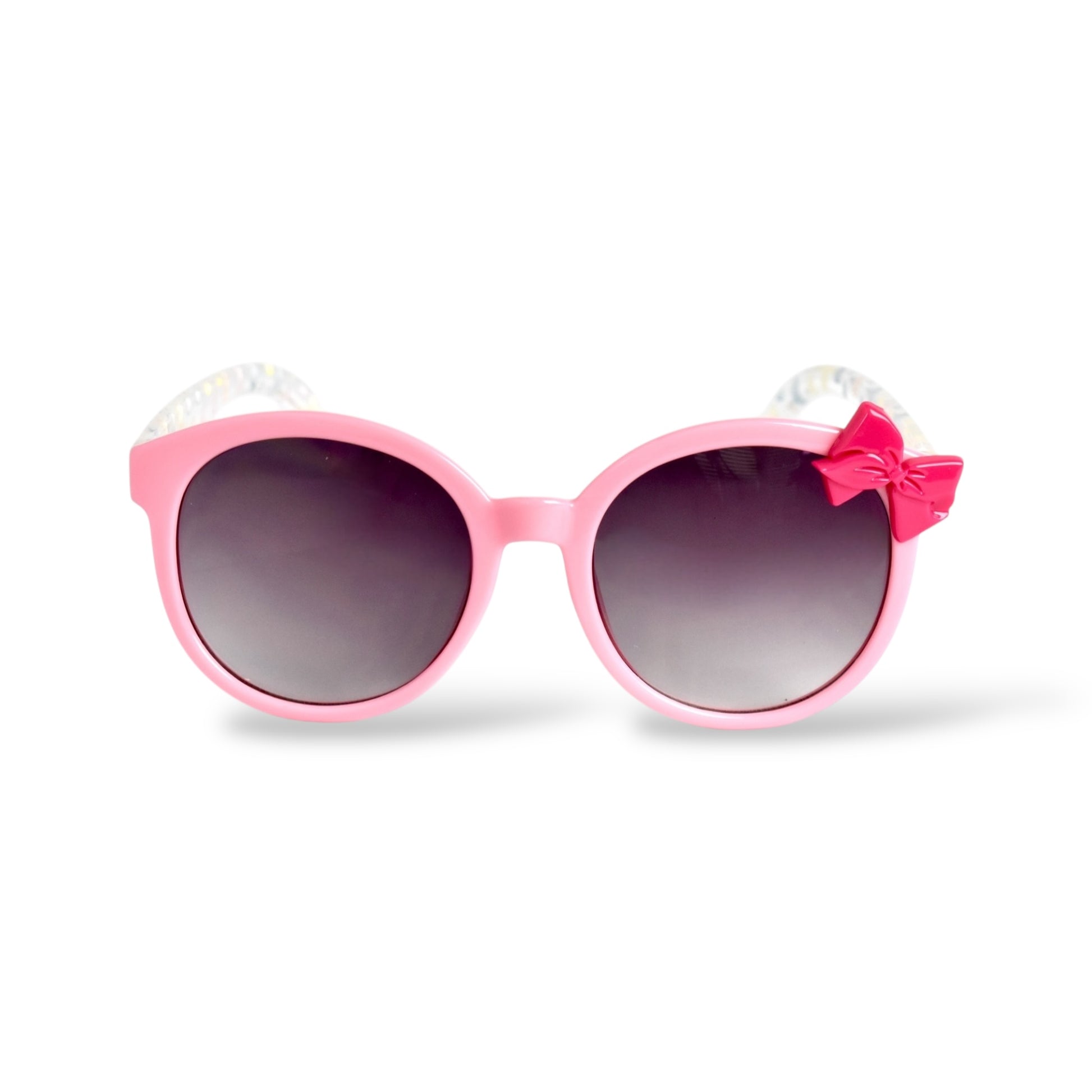 Girls Pink Sunglasses with Bright Pink Bow and Colorful Polka Hearts