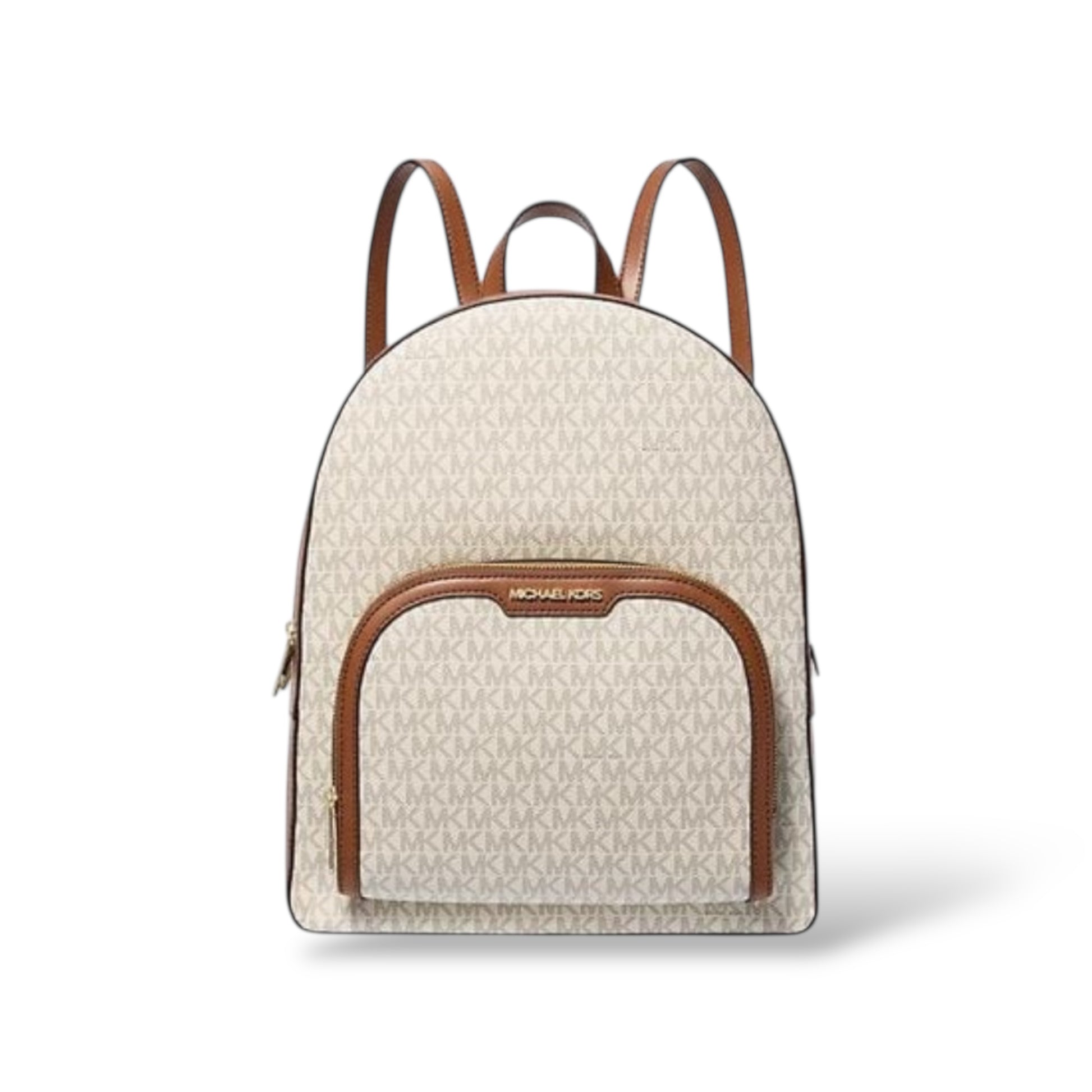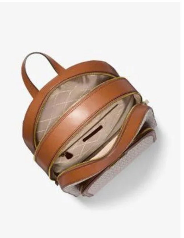 Carry your essentials hands-free and in style with the Michael Kors Jaycee Large Logo Backpack. Featuring the iconic signature print in vanilla canvas with gold-tone hardware, this backpack effortlessly blends playful charm with sophisticated design. A front zip pocket keeps your smaller essentials within easy reach, while the roomy interior accommodates a laptop, tech gadgets, and daily necessities. Luxurious leather details elevate the look, proving that practicality and fashion can go hand in hand. Perfect for work, school, or everyday adventures, this backpack makes a statement wherever you go.
