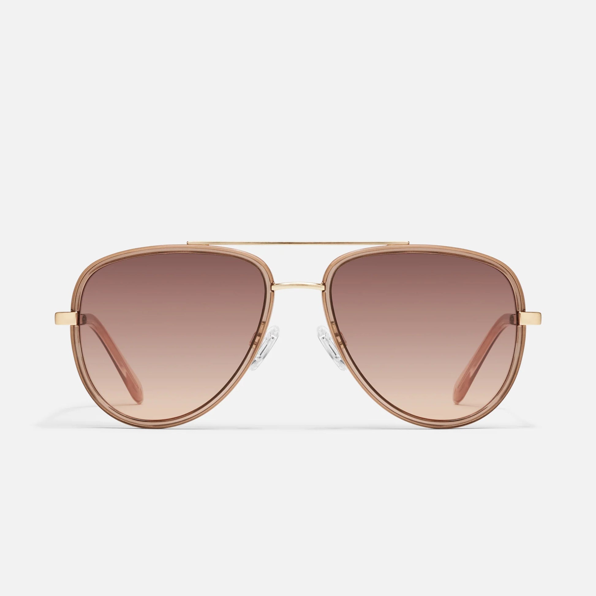 Get the best-selling "All In" style, now in a slightly smaller frame. This modern aviator is designed to flatter a wider range of face shapes while maintaining its signature bold look. The chic doe-colored frame offers a soft, neutral alternative to traditional metal, perfectly complemented by the warm brown fawn lenses for a sophisticated, monochromatic look.