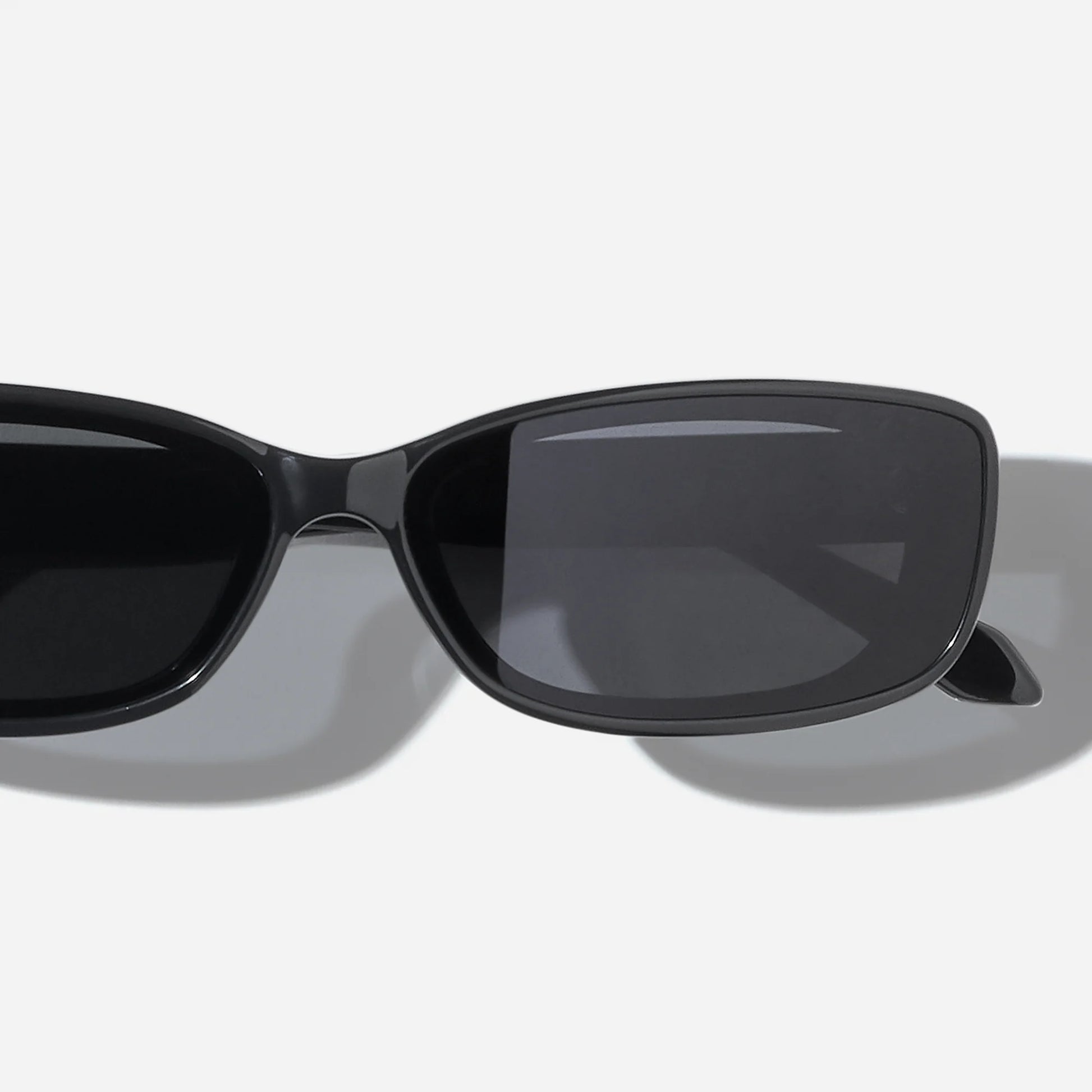 Keep it clean and cool with the Vibe Check sunglasses. Featuring a sharp, rectangular shape, these shades deliver a sleek, minimalist look that’s effortlessly on-trend. The classic black-on-black colorway makes them the ultimate versatile accessory for a modern, understated aesthetic.