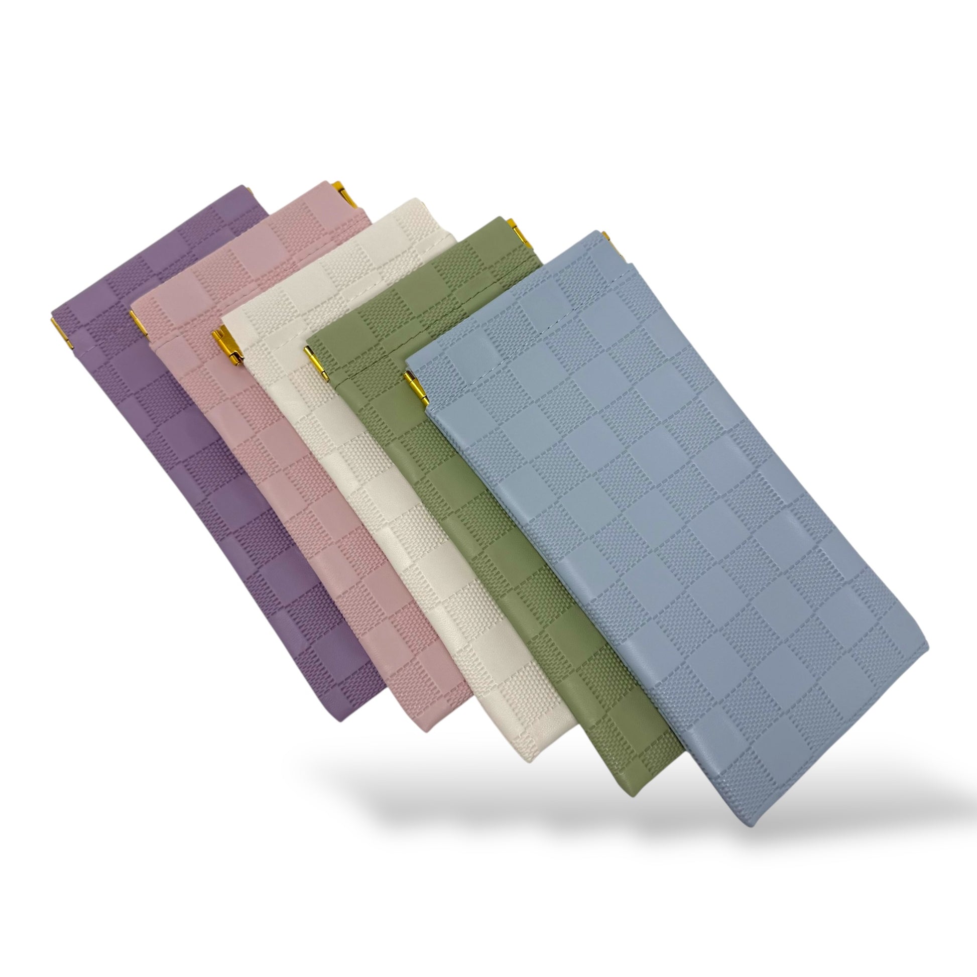 These playful sunglasses pouch features a vibrant checker embossed design and water-resistant material to keep your shades safe and dry. Measuring 3.5" x 7", it sits flat when empty, making it easy to fold and tuck into any small bag. Add a splash of color and fun protection to your everyday carry!